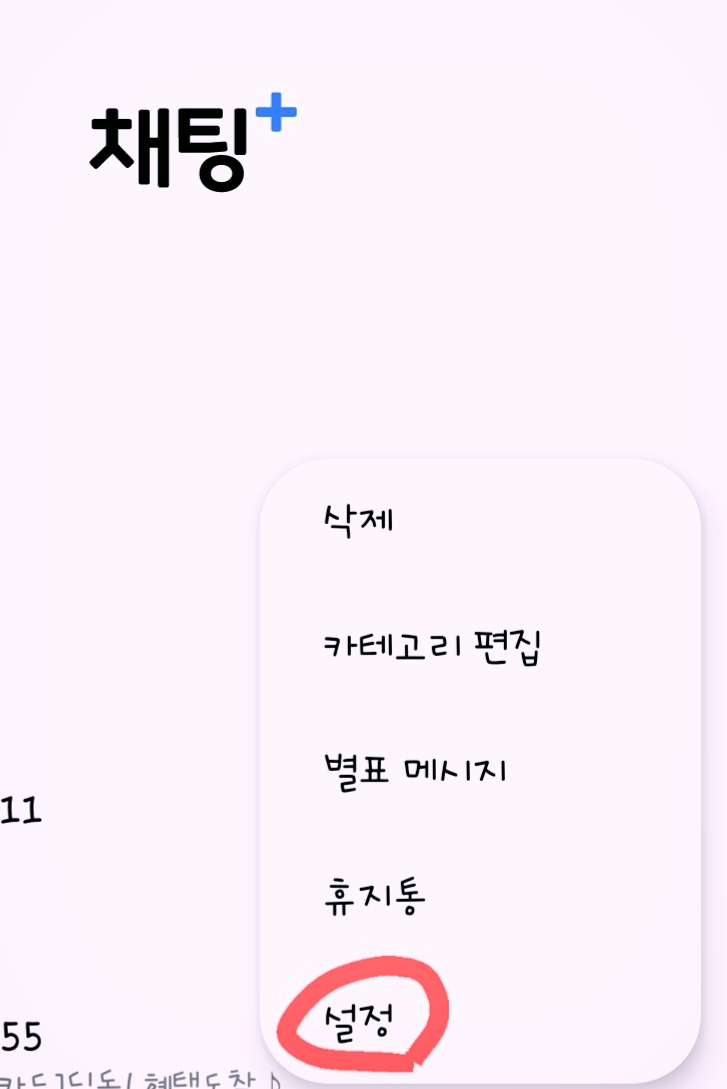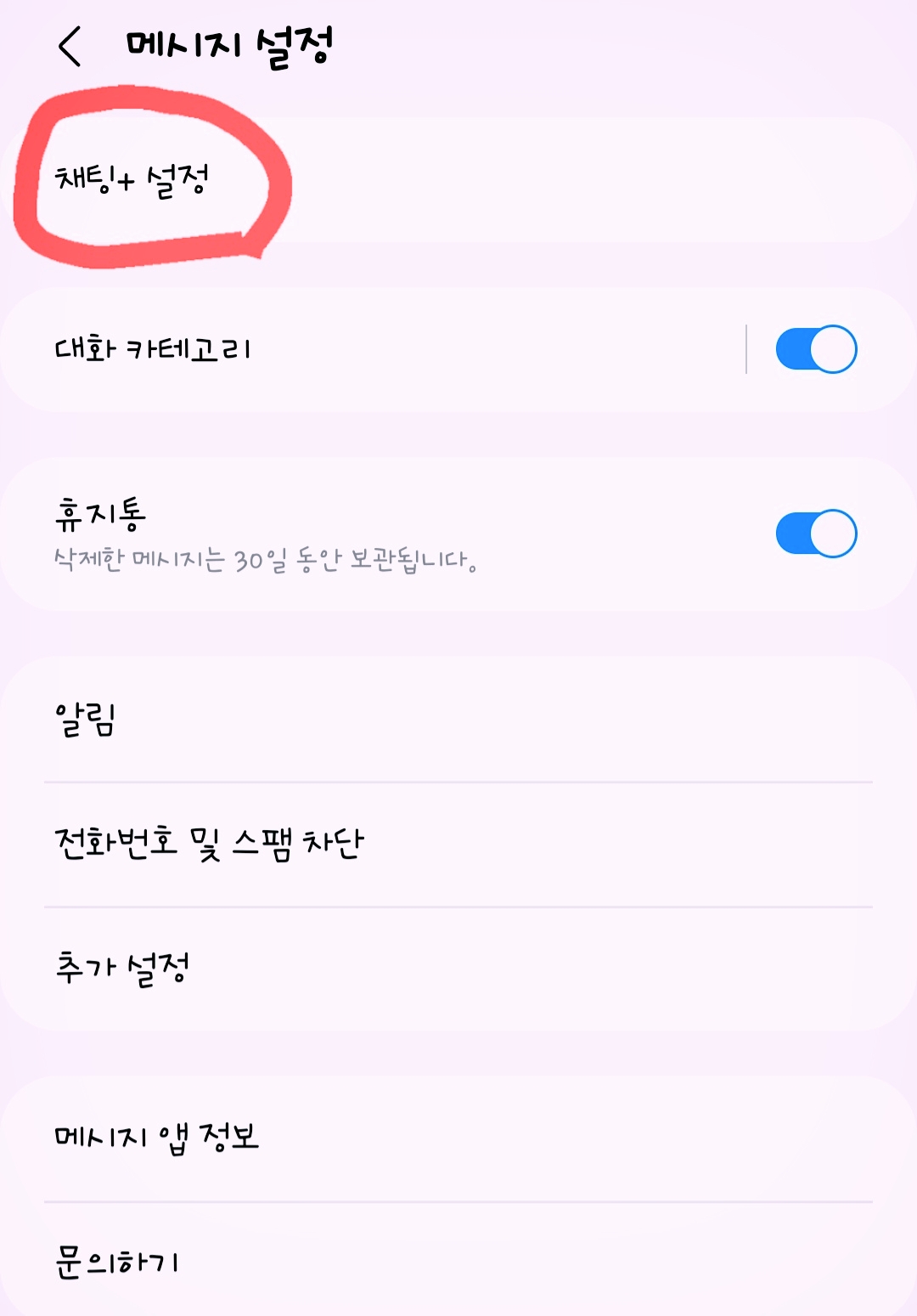 설정에 들어가서 맨 위에 <채팅+설정>을 눌러줍니다.