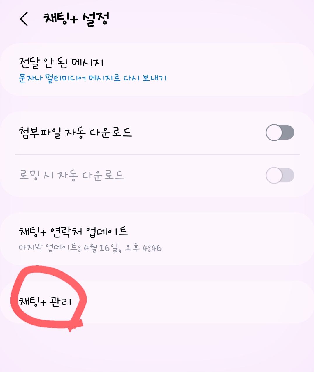 그리고 맨 아래에 <채팅+관리>로 들어갑니다.
